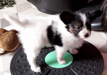 Hun er en springfjeder og overrasker os konstant med hvor hun kan hoppe op. Fra hun var blot 7-8 uger har hun løbet op på A'et (agility) fuldkommen frygtløs. Jeg mistænker seriøst, hun er inkarnationen af Trinity. Hun fnyser også som hende og minder i det hele taget meget om hende.